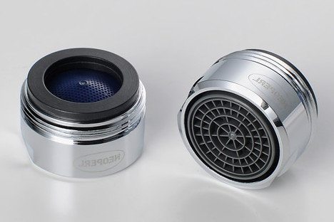 Принцип работы аэратора для смесителя заключается в том, что проходящая сквозь насадку вода смешивается с кислородом, за счет чего на выходе образует мягкую пенную струю. При этом интенсивность потока сохраняется неизменной, а расход воды снижается почти вполовину. К тому же естественный барьер способствует задерживанию мелких частиц мусора.