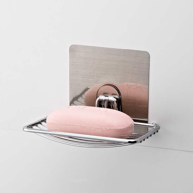 Преимуществом таких моделей является возможность быстрого снятия емкости для хранения мыла, если требуется ее помыть или заменить. Менее надежный способ крепления – это самоклеящийся вариант конструкции. Для того чтобы подвесить модель без держателя, нужно воспользоваться двусторонним скотчем и специальным клеевым составом, идущим в комплекте с моделью. Данный способ крепления подходит для ровной поверхности и легких по своей массе мыльниц.