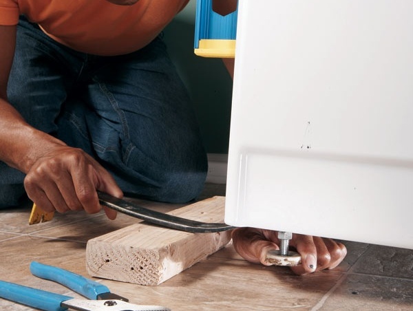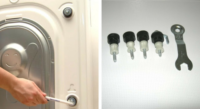 Еще одна частая проблема, из-за которой стиральная машина прыгает и смещается во время отжима — это не правильная установка. Главным условием нормальной работы машинки, является ее строго горизонтальное положение на ровном и не скользком полу. У машины снизу есть ножки, которые легко регулируются ключом, отрегулируйте их так, чтобы она не шаталась и стояла устойчиво, так же следует выставить ее по уровню при помощи строительного уровня.