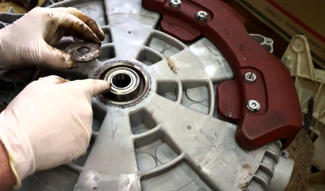 Другой встречающейся причиной вибрации является изношенность подшипников. Когда сальник уже не герметичен и влага начинает попадать на подшипник, начинается процесс постепенной коррозии и последующего разрушения. Вначале появляется скрежещущий звук, затем отжим начинает сопровождаться сильной вибрацией. Тогда следует просто заменить подшипник, причем если этого не сделать вовремя, машина может серьезно пострадать. Это уже довольно серьезная неисправность, в этом случае лучше обратиться к специалистам, если вы хотите сами разобраться в этом, то прочитайте статью, как поменять подшипники своими руками.
