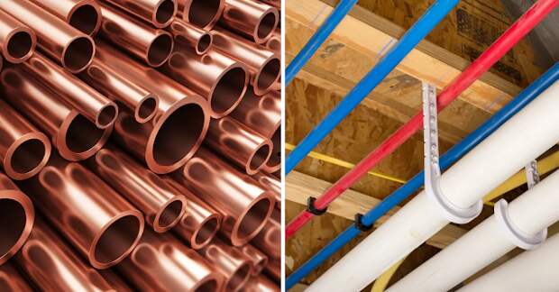 - Покрытие и обработка, голые трубы подходят для чистой воды, луженые (олово) защищают от коррозии, пластиковая оболочка (PEX) снижает конденсацию и обеспечивает теплоизоляцию.