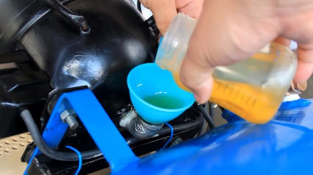 Перевернув компрессор на бок, заливаем немного чистого масла, и закручиваем заглушку обратно. Теперь все в порядке, можно пользоваться нашим компрессорным агрегатом!
