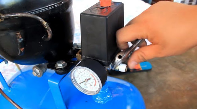 Собрав конструкцию, следует проверить её работоспособность. Подключаем к выходу компрессора краскопульт или пистолет для подкачки шин. После этого, при выключенном тумблере, включаем штепсельную вилку в сеть. Выставляем регулировочное реле на минимальное давление и затем подаем питание на нагнетатель. Создаваемое в ресивере давление контролируем при помощи манометра. Убедившись, что при достижении некоторого уровня реле отключает двигатель, проверяем герметичность воздуховодов и соединений. Это легко сделать при помощи мыльного раствора.