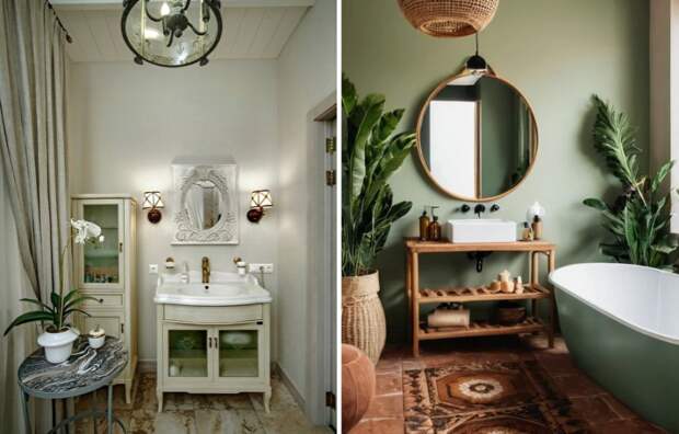 Главное различие. В шебби шик сантехника — это ретро-винтаж с мягкой патиной и романтичными формами, подчёркивающая уют и ностальгию. В бохо шик — это эклектика, текстура и этническая эстетика, где каждый элемент выглядит как «путешественный сувенир», добавляющий характер и индивидуальность.