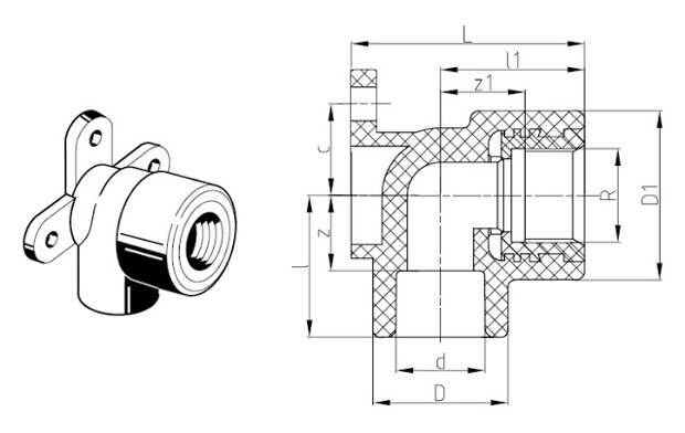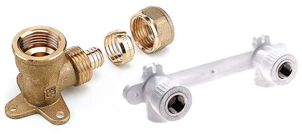 По своей конструкции этот вид фитинга состоит из фитинга-переходника (розетки) и крепежной планки.