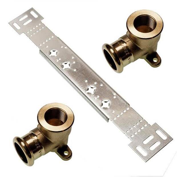 На самой планке находится разъем (муфта), который с одной стороны присоединяется к трубопроводу, а другой стороны есть резьба для присоединения к сантехническому прибору.