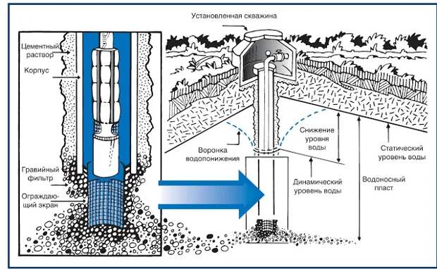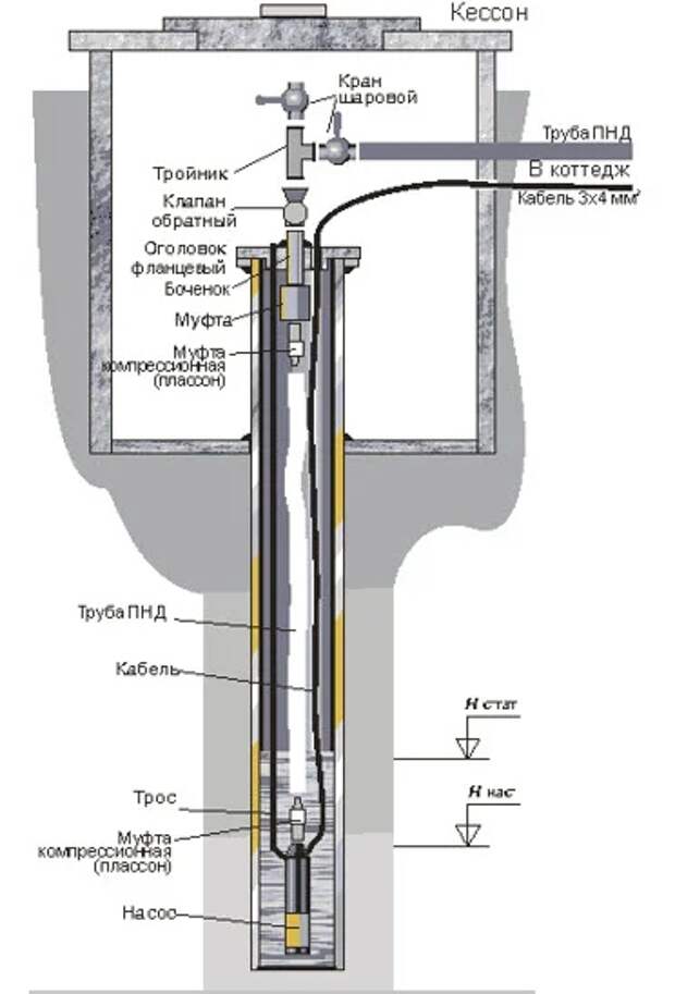 Если параметры агрегата в скважине на воду не соответствуют ее реальным расчетам, то вскоре возникнут проблемы с работой оборудования и его нужно будет извлечь. Если производительность прибора выше, чем возможности источника, то уровень воды упадет ниже всасывающего патрубка.