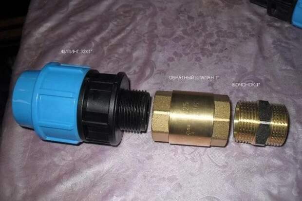 Обратный клапан должен устанавливаться между подающей трубой и помпой. При этом размер труб должен в точности совпадать с габаритами присоединительной резьбы на приборе.