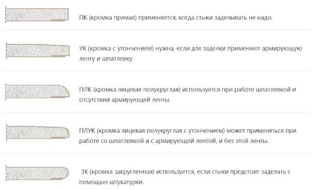 Обозначение видов кромок листа ГКЛО: