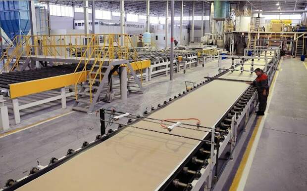 Для производства гипса используется специальная шамотная глина. При воздействии высоких температур она спекается, благодаря чему лист изделия не рассыпается. Картон и гипсовый слой скрепляют друг с другом при помощи специальных клеящих составов, которые выступают в роли армирующего каркаса, укрепляя само изделие.